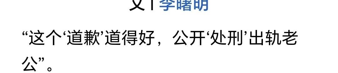 文章开头称,这个歉道得好,相当于公开处刑她老公。